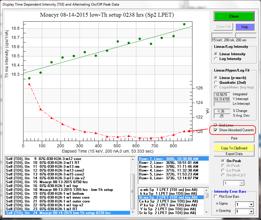 Here's an example of TDI data plotted with the absorbed current option (from Mike Jercinovic, U Mass):
