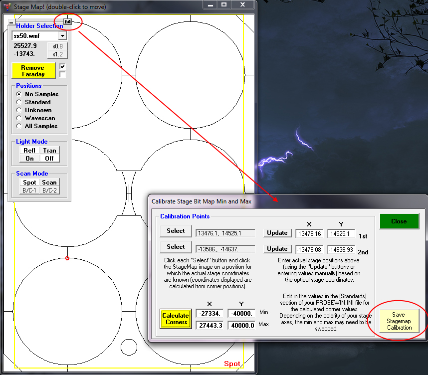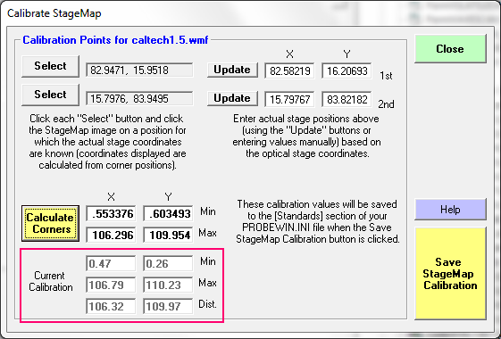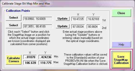 I've improved the StageMap calibration feature so the software can now automatically save your calibrations to the Probewin.ini file using the new "Save StageMap Calibration" button see here:
