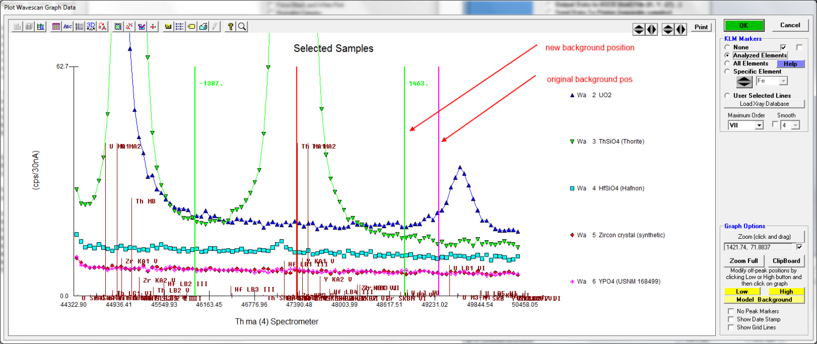 I think the new markers are much better looking and we don't get all that KLM "hash" at the bottom of the screen as seen here in these plots of NIST K-411 mineral glass: