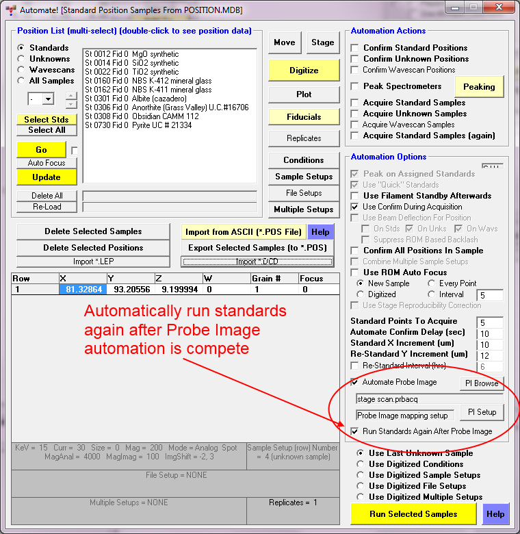 I just added the ability to automatically run an final set of standards from the Probe for EPMA Automate! window after the Probe Image automated map acquisitions all complete, as seen here: