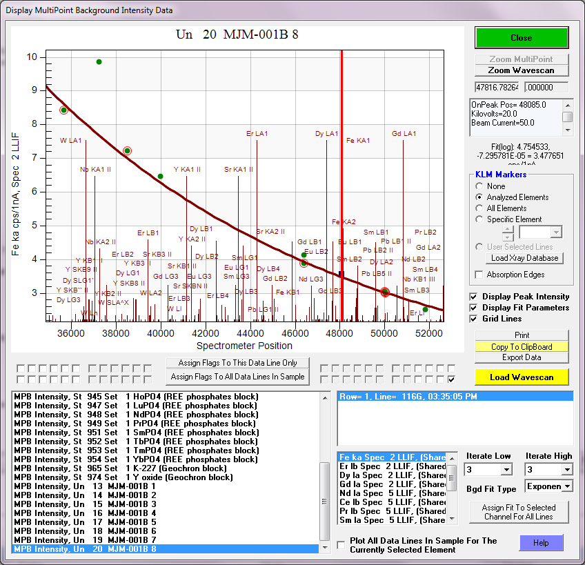 The latest version of PFE (v. 11.2.5) can display KLM markers and absorption edges in the MultiPoint Background dialog for multi-point bgds and "shared" bgds: