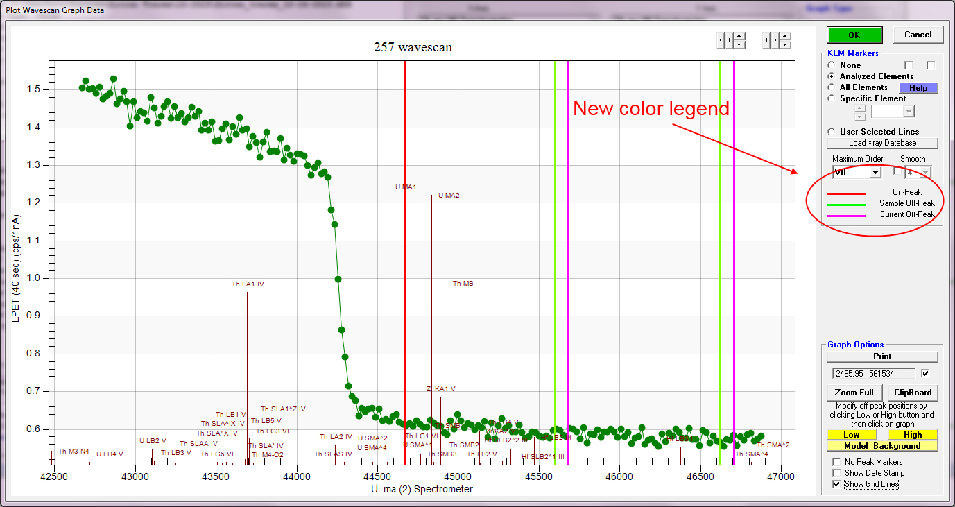Here are some screen shots (attached below) showing the new KLM markers for spectro, angstrom and keV plots.