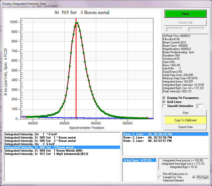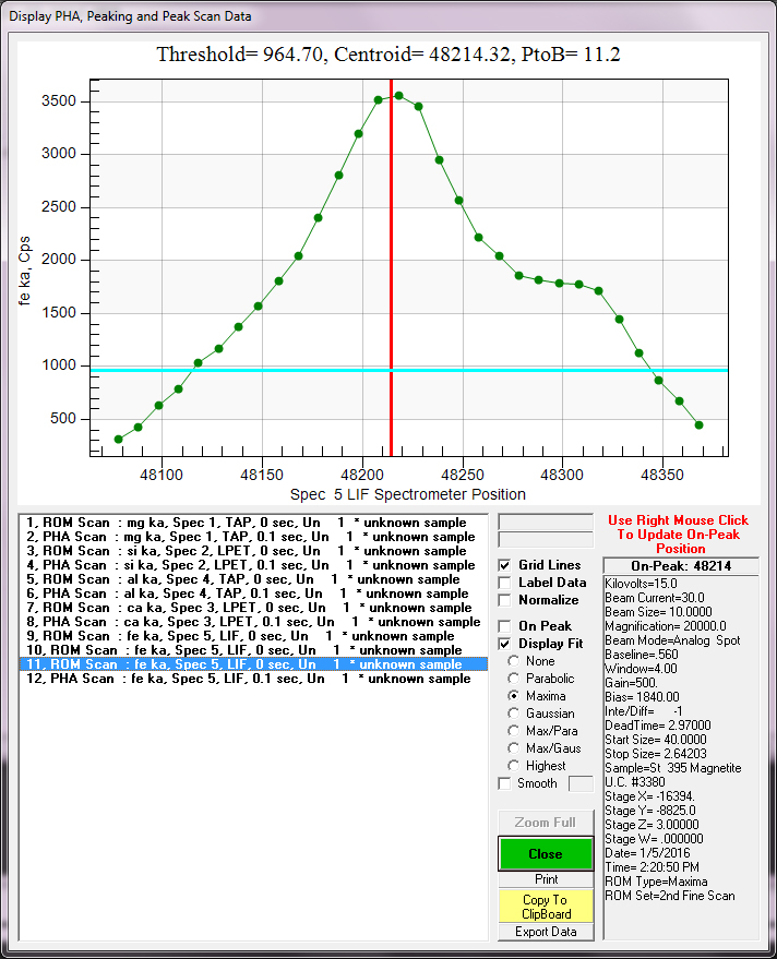 New wavescan graphics in the Probe for EPMA Plot! window:
