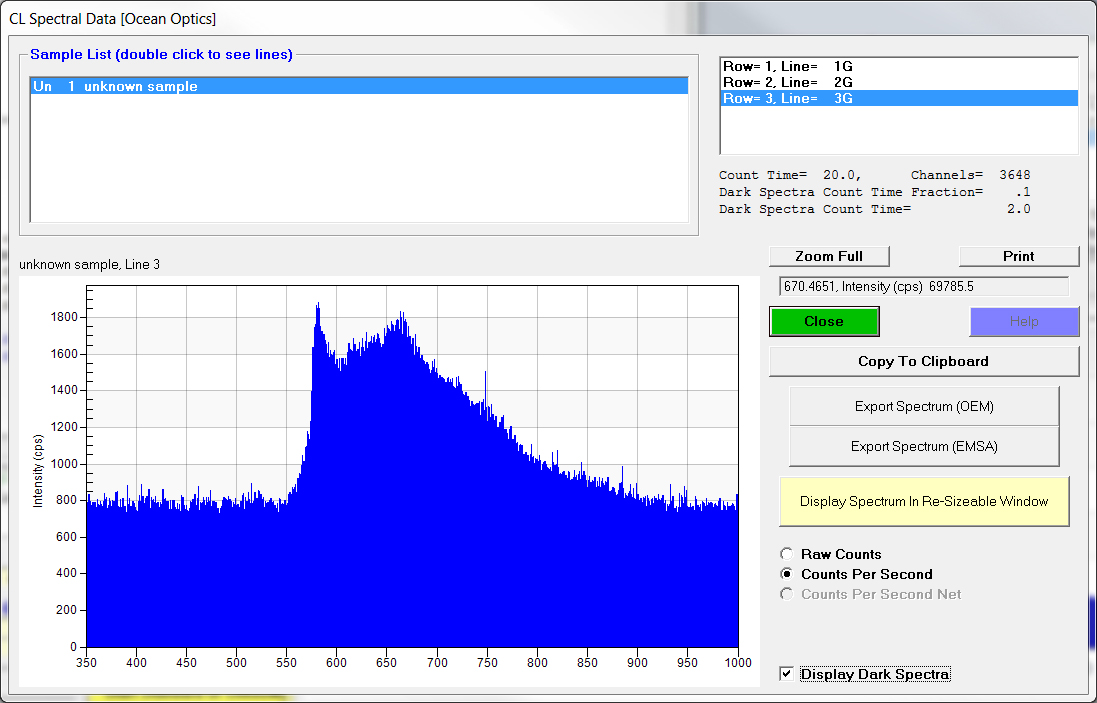 Here is an example of a CL spectrum and the corresponding dark spectrum: