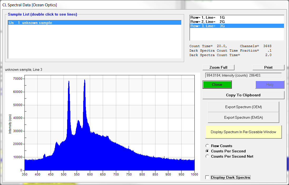 I am very pleased to announce that Probe for EPMA can now acquire CL spectra for point analyses automatically (along with your WDS intensities and EDS spectrum data).  Right now we are only interfacing to an Ocean Optics spectrometer (I'm using the USB4000 unit right now), but other vendors could be supported also.