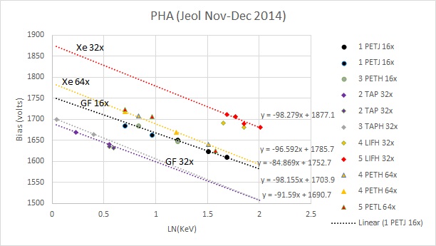 Giving me the empirical equations to calculate bias for any element and enter into PFE. The trick is energy is plotted as natural log to give striaght line.