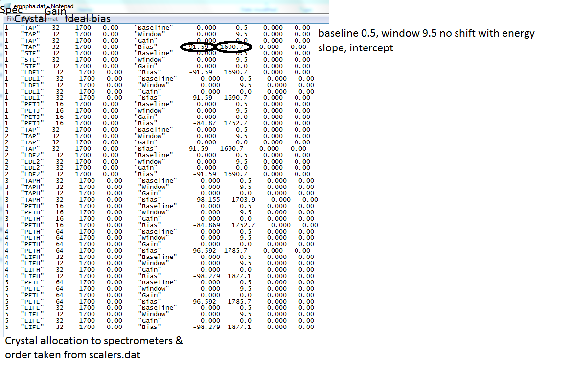 As covered in probewin manual you can then set up an empircal correction. Entering the intercept and slope for each spectrometer/bias/crystal into emppha.dat