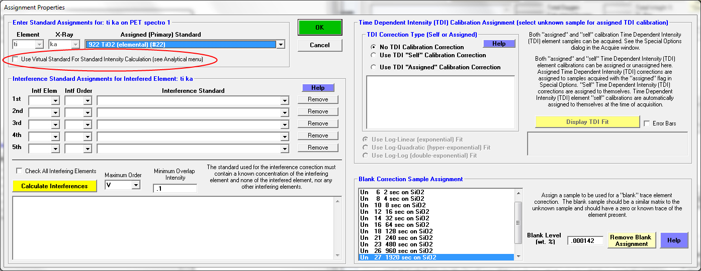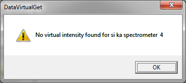 I have encountered a small problem when trying to "Analyse" a sample. A bunch of silicate mineral data was collected using the same analytical parameters, but when I try to "Analyse" one of the analyses which was on a feldspar, I get the error message "No virtual intensity found for si ka spectrometer 4". All the other samples in the run seem to analyse fine without this message. Any idea what is happening there? Let me know if you want or need the mdb/standard file to troubleshoot.