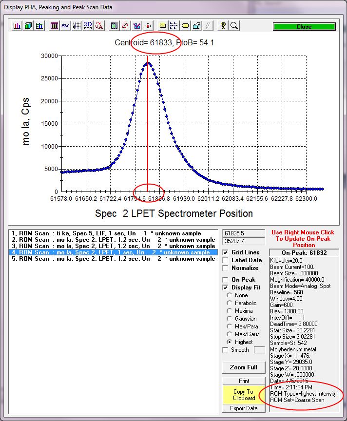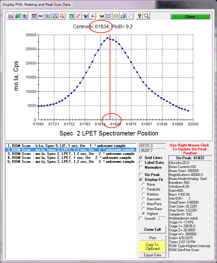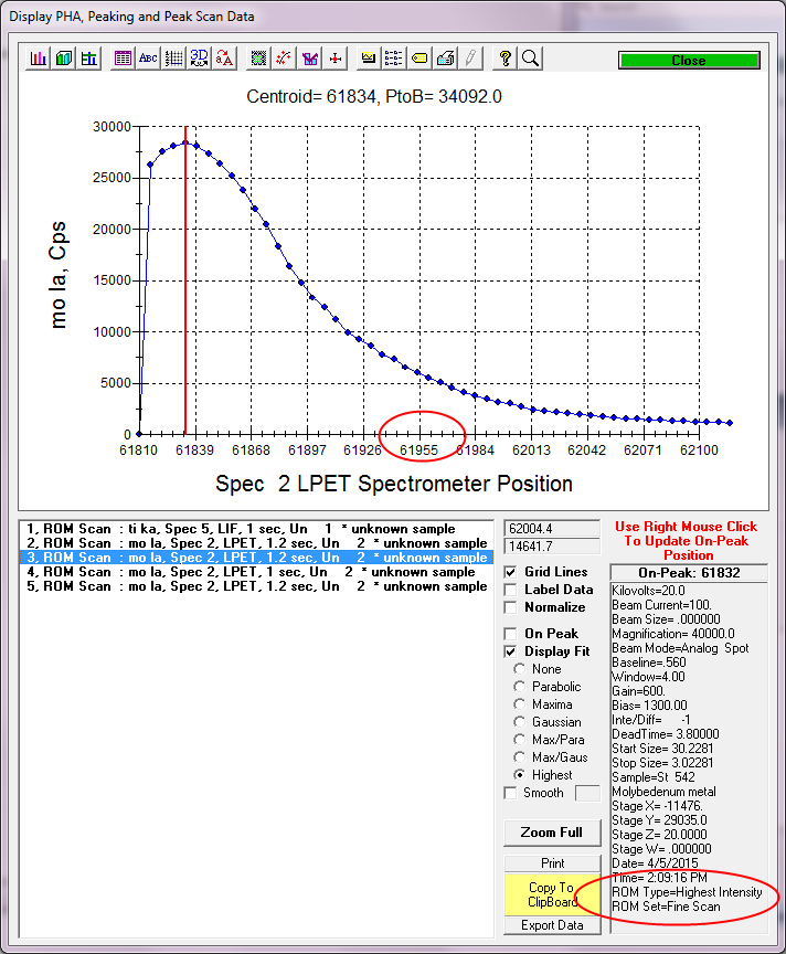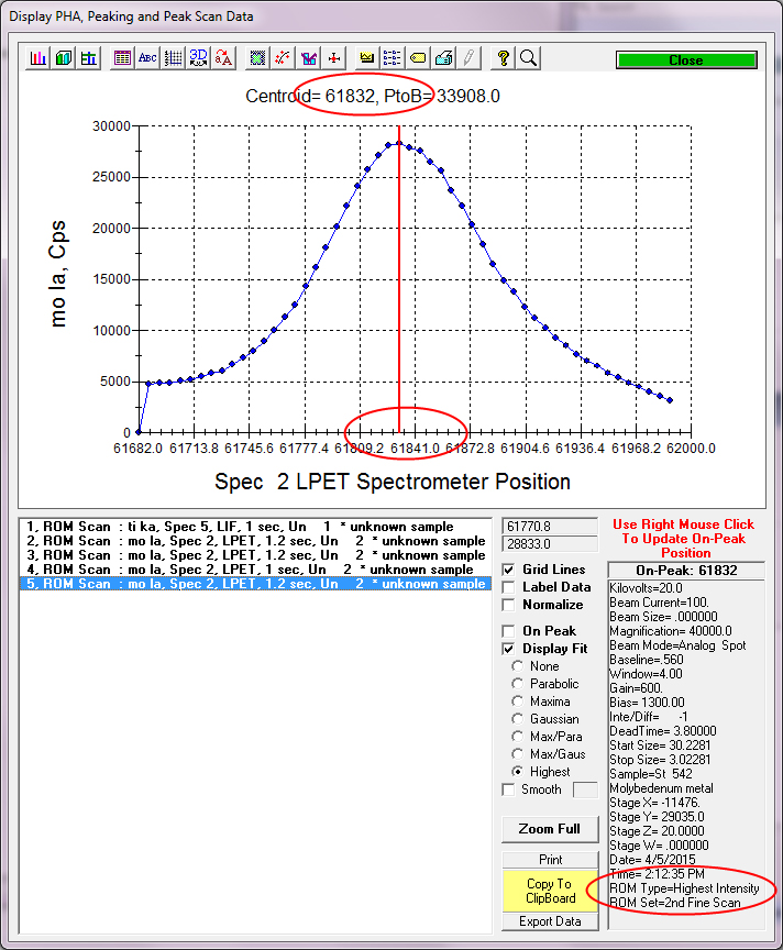 4. Note that it found the proper peak center of 61833. The 2nd fine scan then ran automatically as seen here: