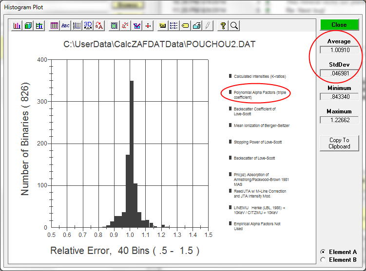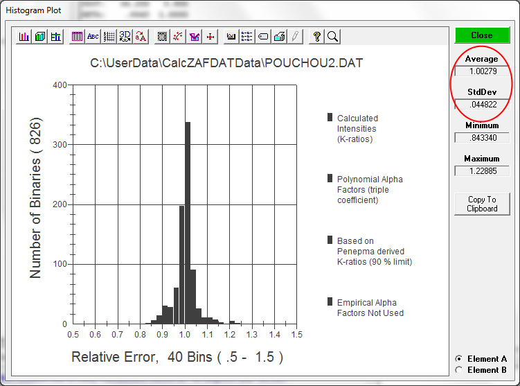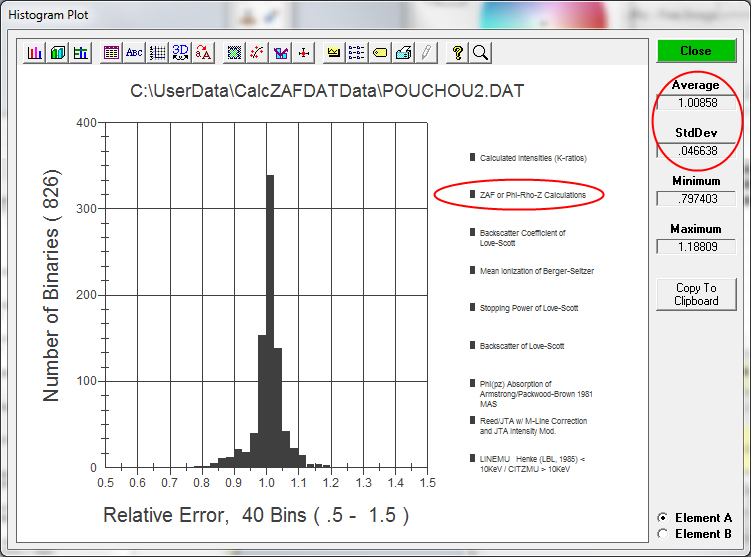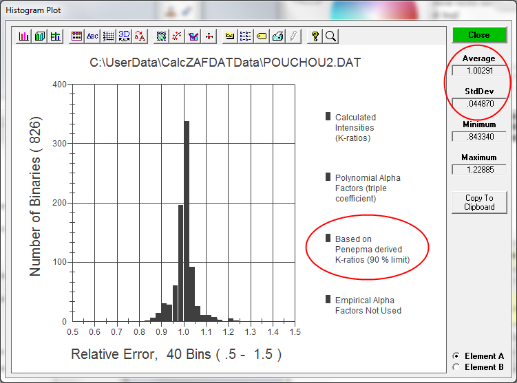 Running the Pouchou2.dat dataset again gives the following results (compare to the above histogram):