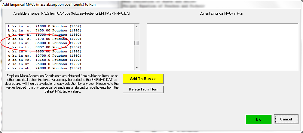 Note that one can check which Penepma derived alpha factors are being utilized by using the Run | List Current Alpha Factors menus in CalcZAF and Probe for EPMA.