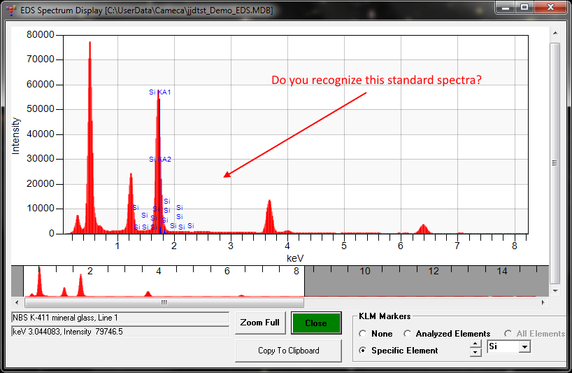I should add that the Thermo NSS demo mode (when SystemSIXSim.exe is running), always produces a Cu-Al spectrum...  anyone know the actual composition of that material (just for fun)?