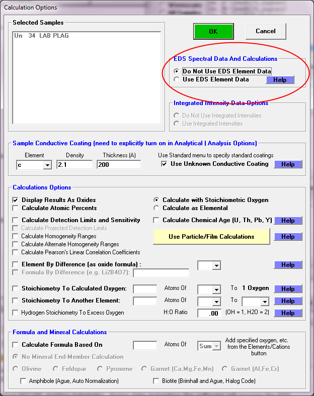 As you say however, the EDS spectrum acquisition (specified in the Acquisition Options dialog from the Acquire! window is entirely different from the Use EDS Element Data option in the Calculation Options dialog from the Analyze! window.