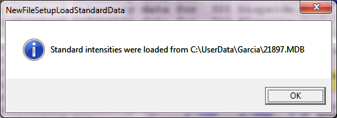 Edit by John: Ben, I created a new MDB, made a new sample, clicked the Load File Setup button and loaded all your standard intensities from the old MDB that you sent me and it worked fine: