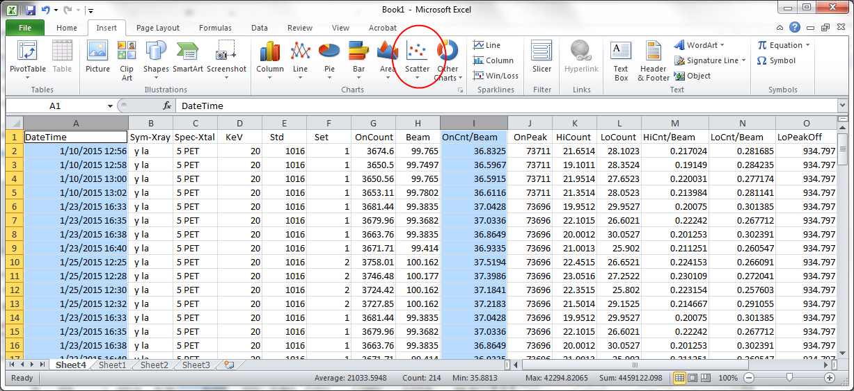 And when it asks "Do you want to export the data to Excel?" click Yes and here is what you do to plot it in Excel: