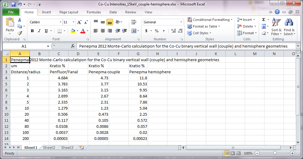 Remember, these PAR files currently can only be utilized in a "couple" geometry, that is, a straight line vertical boundary by Fanal. For (hemi)sphere geometries, the intensities must be calculated using the full Penepma method, which is the subject of the current topic.