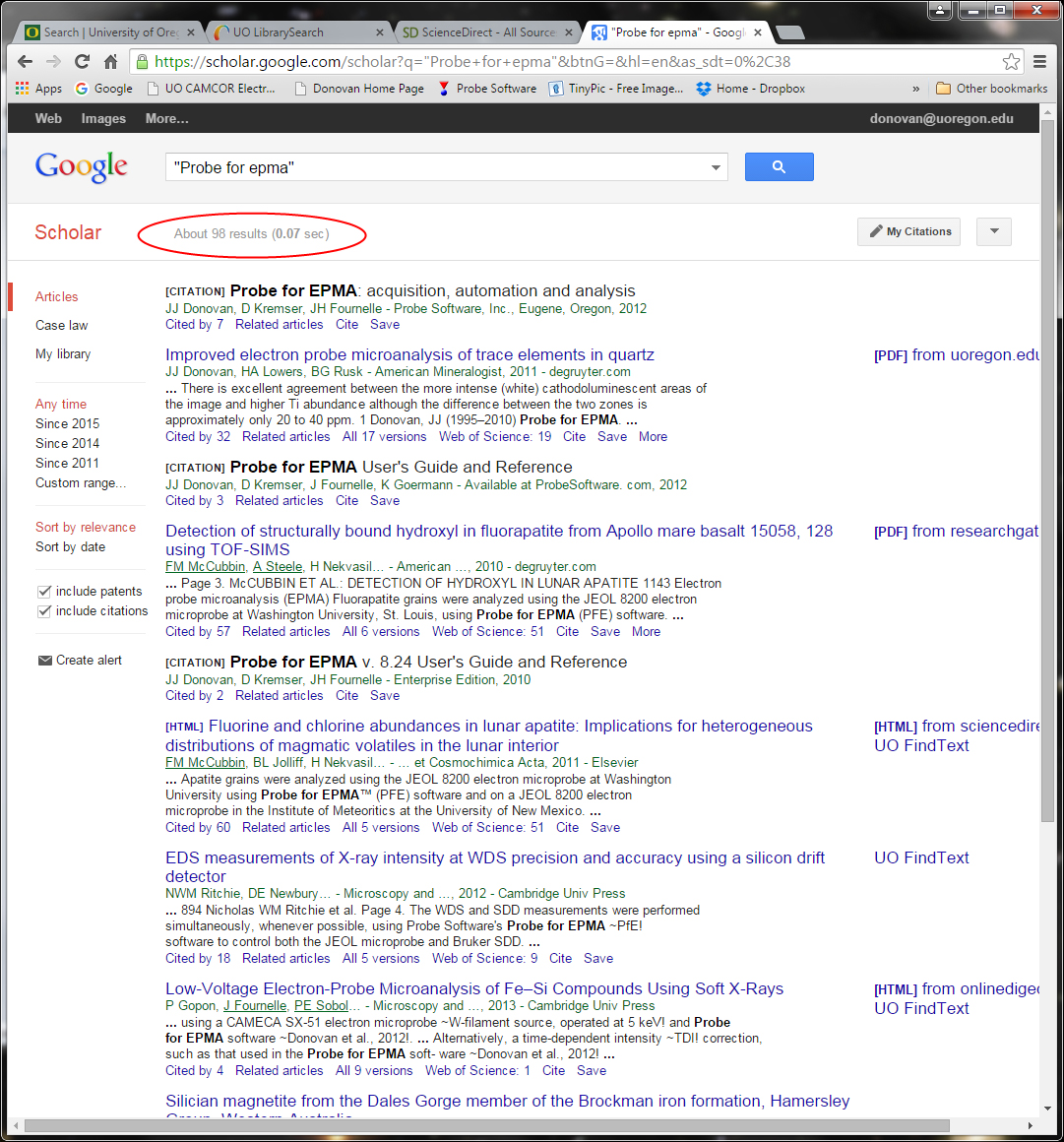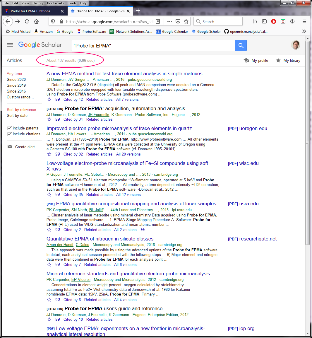If one checks the first post in this topic you can see that in 2015 we had 98 results from Google Scholar using the search string "Probe for EPMA".  At that time we had more hits (188) using the search string "Probe for Windows", which was the old product name.