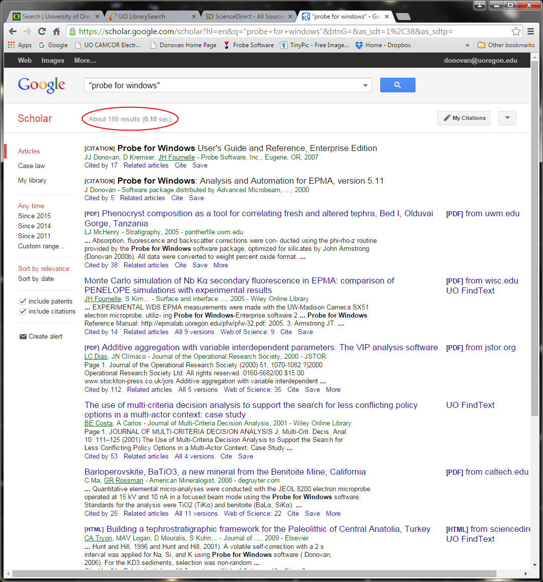 If one uses Google Scholar to search for "Probe for Windows" and "Probe for EPMA" (the name we changed the software to in 2013 or so) you'll get 188 articles for the former and 98 articles for the latter.