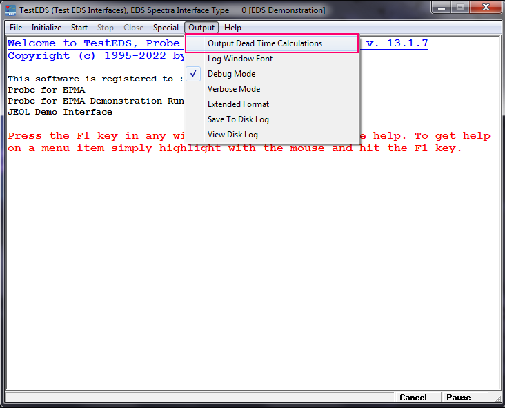 The latest version of Probe for EPMA ( v. 13.1.8 ) now contains an updated TestEDS application which calculates dead time for given observed count rates using the new logarithmic dead time expression from Aurelien Moy.