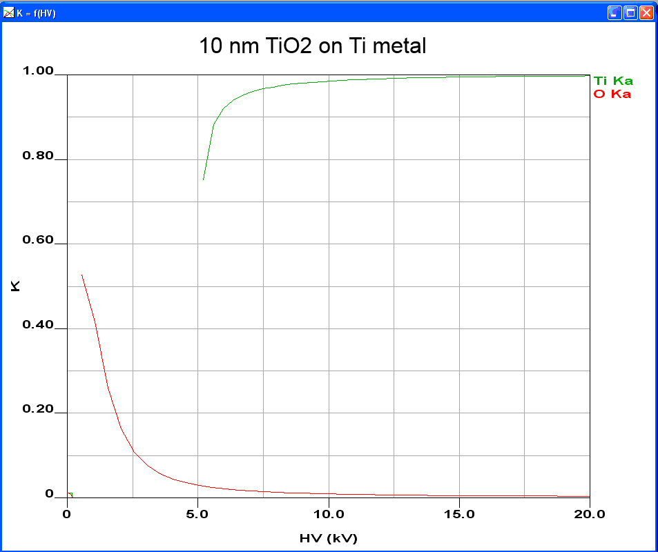 I ran a monte carlo simulation of pure Oxygen and a second model of Pure Ti with a 5nm TiO2 surface layer.