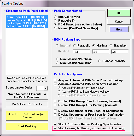 What would be nice is in acquire window, under peak options - allow the PHA scan without running a peak scan.