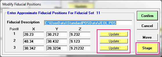 Note the Stage button in the fiducial confirm dialog?  If you click this button you can use the StageMap to get you close to the fiducial position and when you close the StageMap window you can click the Update button to update the fiducial you are on.