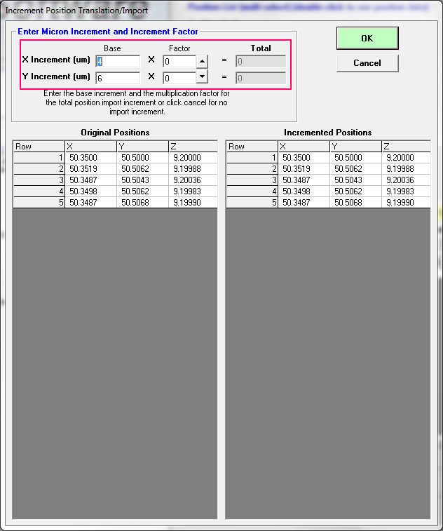 Also, as an alternative, since the FEI and JEOL instruments use mm stage units, you can click "No" when it asks if you want to transform the fiducials and simply apply some mm offsets using the import increment dialog: