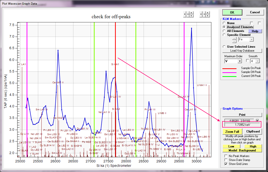 Thanks Annette and John, I wondered what the check box was for, now I know. Is there any reason, though, why the relative and three sets of absolute values couldn't all be displayed at the same time rather than having to switch between? There's plenty of room that side of the plot window. I'd particularly like to have the absolute energy so I can check my EMAS desk mat (every probe lab should have one😉) to see if it might be an unexpected element in the sample.