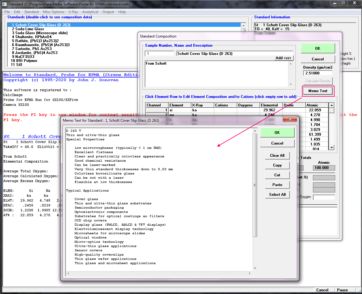 It's a reasonable idea, so that's why I asked if he needs a single memo field for the standard (or PFE) database, or a memo field for each standard composition.