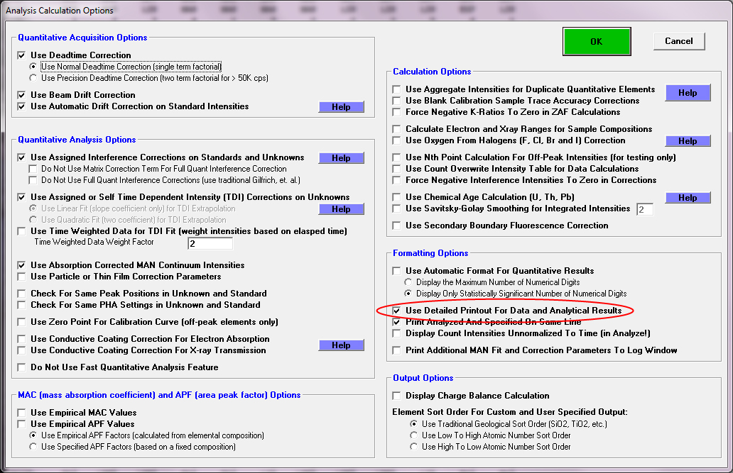 Both the JEOL and the Cameca software have a one click option that gives me the set-up. Having such an extended report option in PFE would be incredibly useful. If this already exists and I have again missed it, I am eager to learn where it can be found.