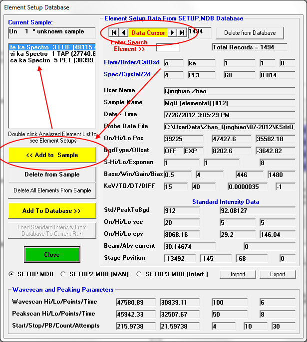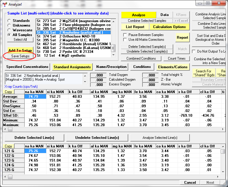 But also, the easiest way to automatically store all your element setups and standard intensities for general re-use (you can always load a complete file setup obviously too), is by using this handy Save Setups button as seen here: