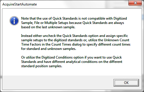It seems that one cannot use "quick standards" with "digitized sample setups".