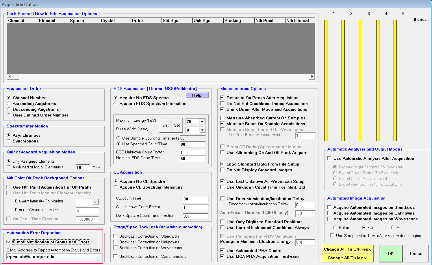 The idea being that when this box is checked the software will send email reports every 8 hours or so on the progress of any automation running in Probe for EPMA. It will also send any errors it detects such as the filament burning out or a vacuum problem.