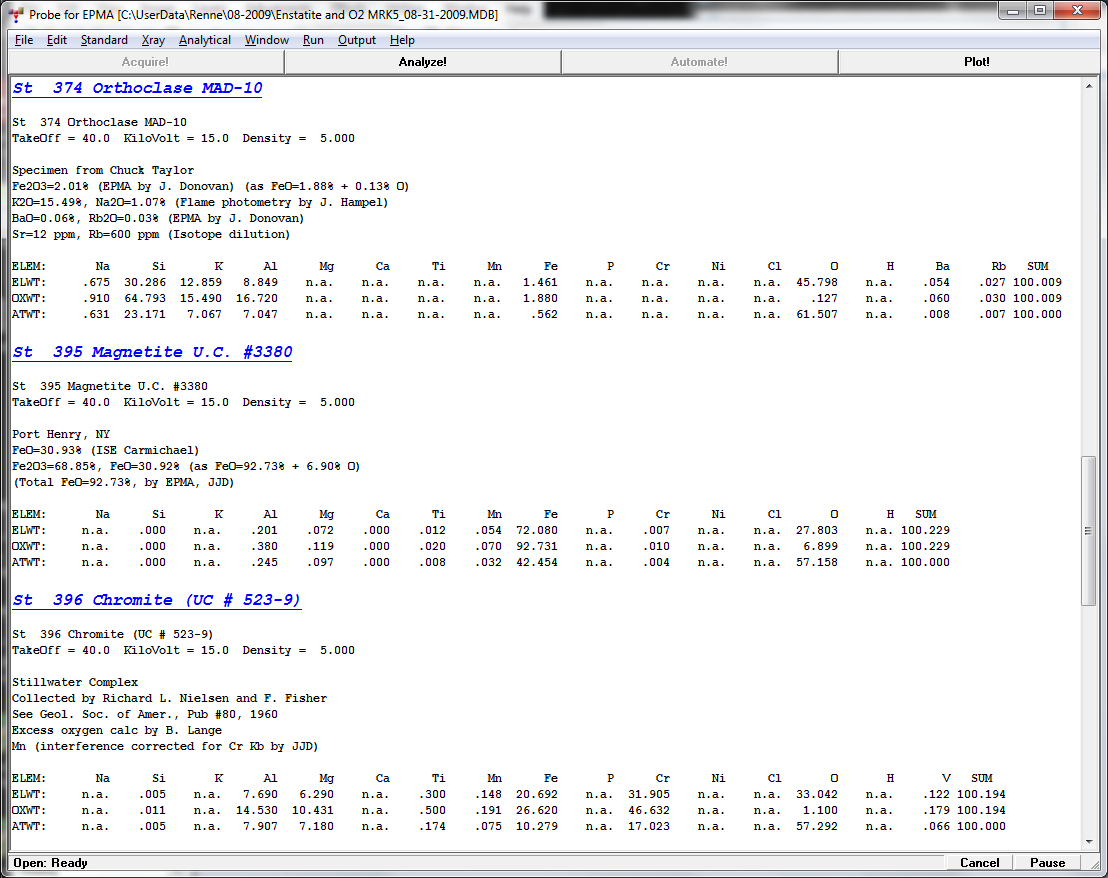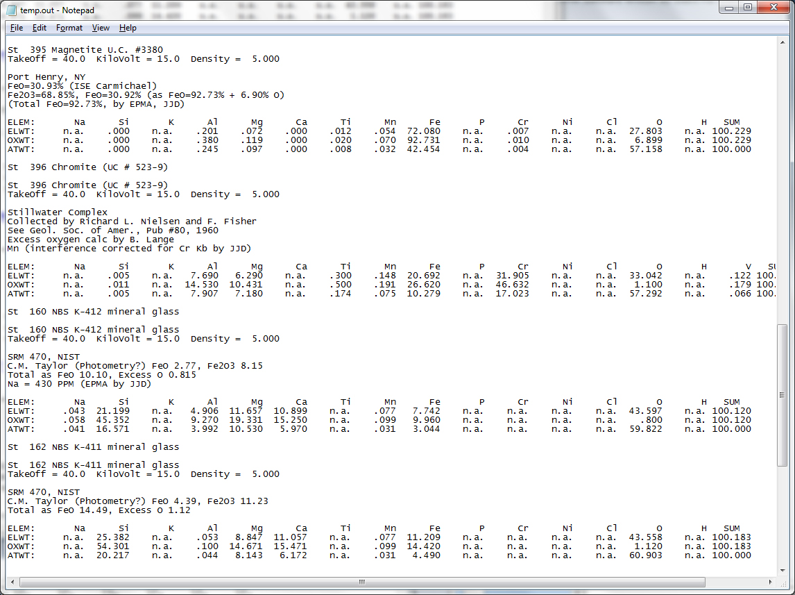 So for example, you could run Standard.exe, select Save Log To Disk, click the Standard | List Oxide Standards menu and get this output in a text file: