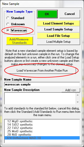 Just specify all the elements you want to quantify in an unknown sample (up to 72 elements). Then peak all the elements and adjust the PHAs. Then make a wavescan sample (it will contain all the elements) and acquire a wavescan. The software will automatically acquire a wavescan for each element in the wavescan sample around each emission peak position.