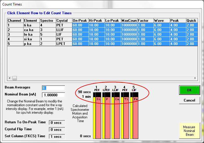 So now with this new option the software will automatically calculate how long the WDS elements will take to acquire and simply sets the EDS integration time to that number (minus a correction for deadtime, since the EDS acquisition time is in "live time" units.