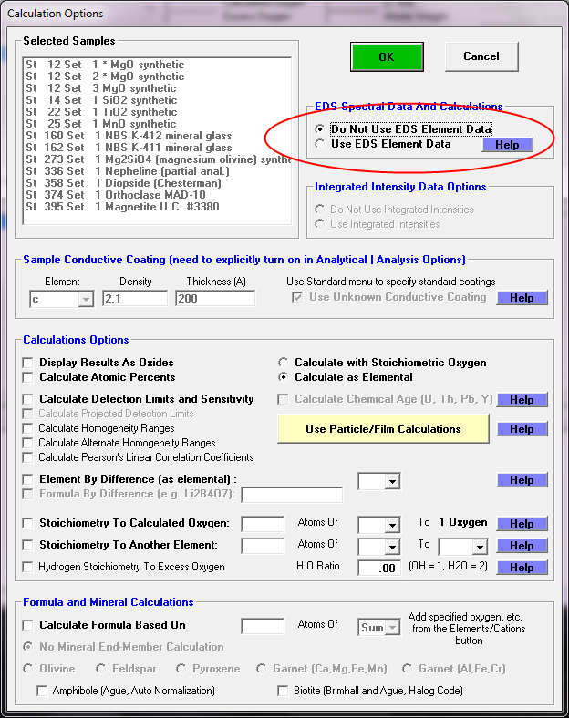 If our colleague had been analyzing some WDS elements also, this problematic option would have been more obvious because the WDS element intensities would have been properly displayed, and only the EDS elements would have had zero intensities.