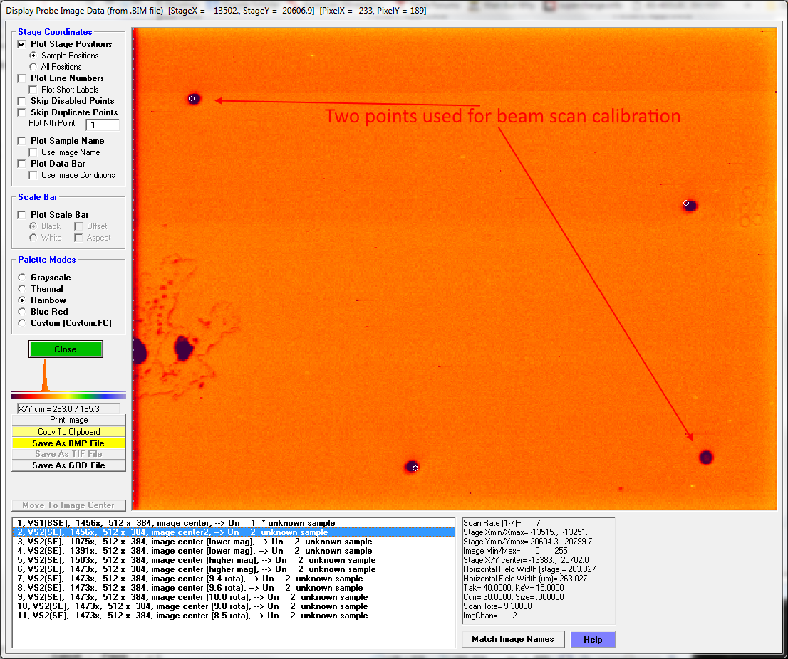 I wanted to post a few links to image calibrations in Probe for EPMA, both for images acquired from the Imaging window and also images imported into the PictureSnap feature, along with a link for the new three point calibrations using stage and beam scan images in CalcImage and a link to Probe Image calibrations: