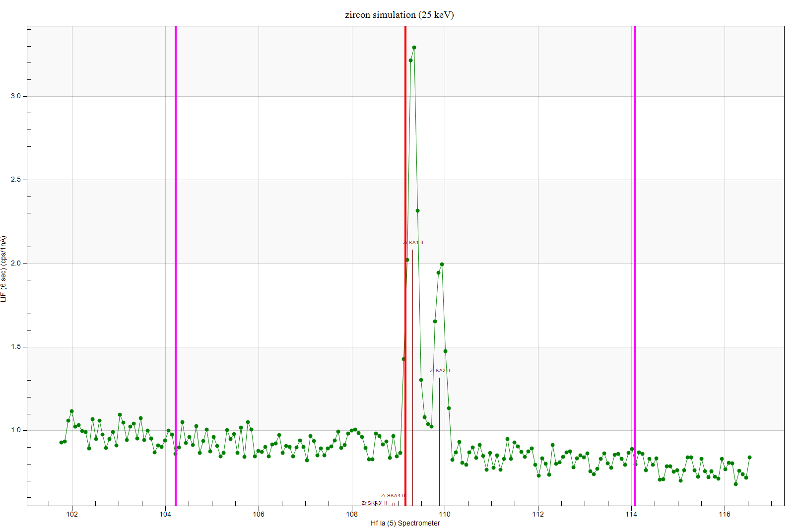 By the way I also happened to also run a simulation of the Hf La region and here is a teaching opportunity to demonstrate to students why in zircon we prefer the Hf Ma line: