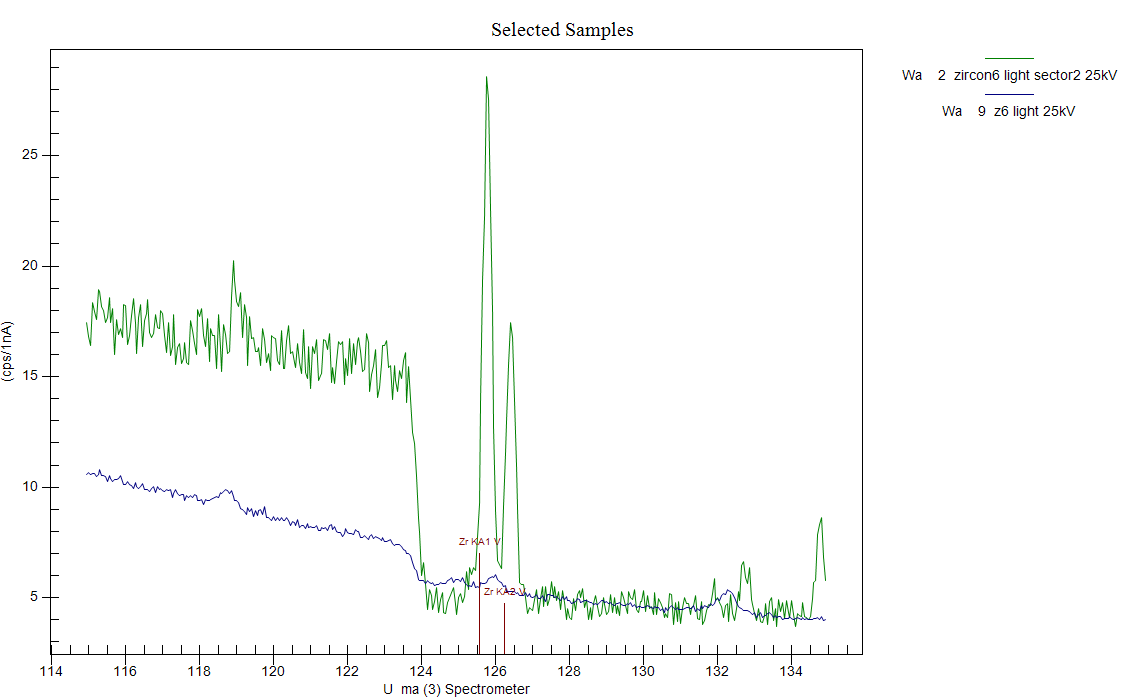 OOPS - I was wrong above - The difference between the Jeol and Cameca observed - was that the Jeol was running in differential mode with a fully open window (0.5-9.5volts; in which 9th order excluded) - which for some reason is not the same as running the Jeol in integral mode (in which 9th order occurs). The Cameca was in integral mode. The same may apply to Zr Ka V?