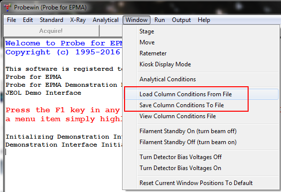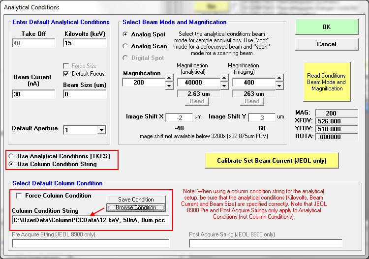One can also save/load Probe Column Condition (PCC) files from most of the Analytical Condition dialogs as seen here: