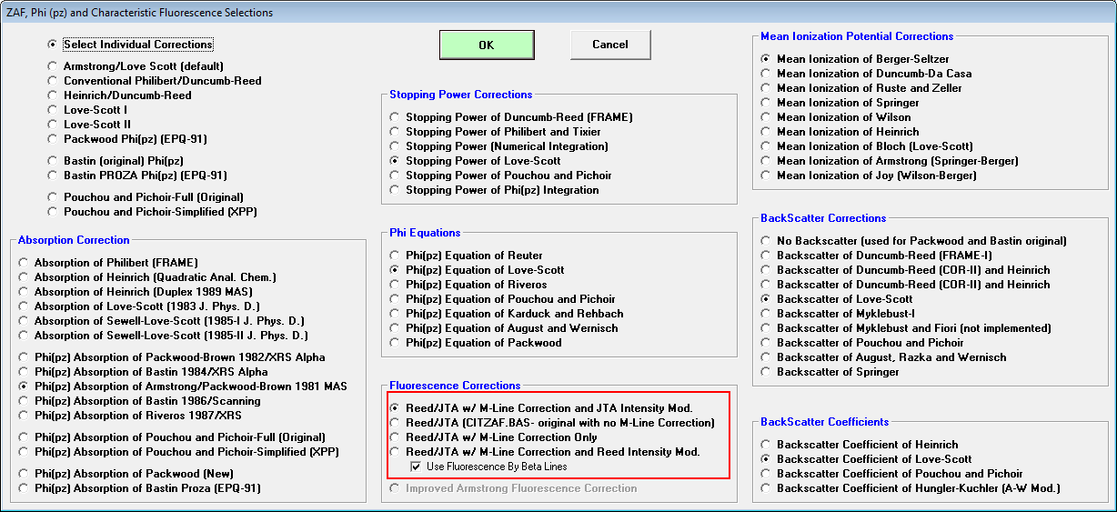 That said, I believe that if you turn off the M-line and beta fluorescence flags in our free CalcZAF utility as found in this dialog: