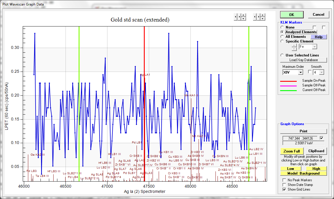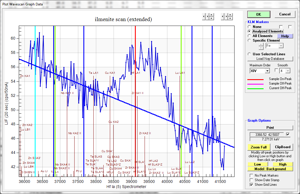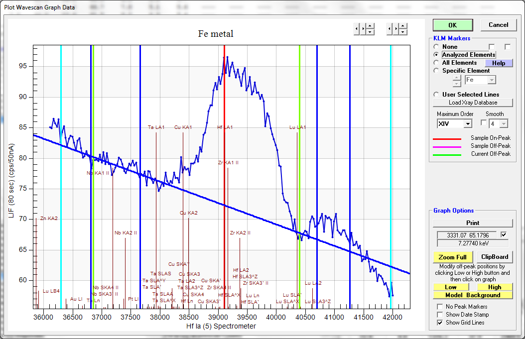 You can see (most) of the MPB (multi point background) measurement positions that I decided to utilize for this effort. But the thing is this peak is *way* too wide to be a normal spectral emission peak and I have no idea what it is, but it creates an "interference" of around 0.3 wt% Hf in pure iron metal.