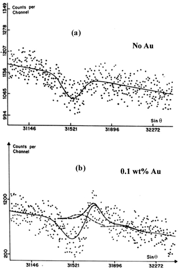 The classic one that many have noted is the "hole" in the continuum for Au La on an LiF crystal as reported by Self et al. (Self PG, Norrish K, Milnes AR, Graham J, Robinson B. Holes in the background in XRS. X-Ray Spectrom. 1990;19:59–61) as seen here: