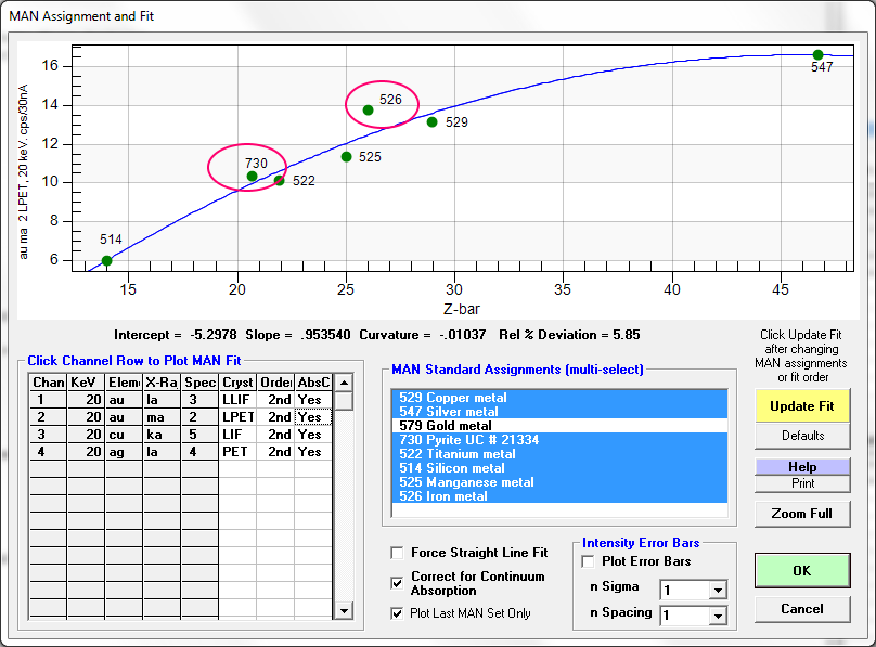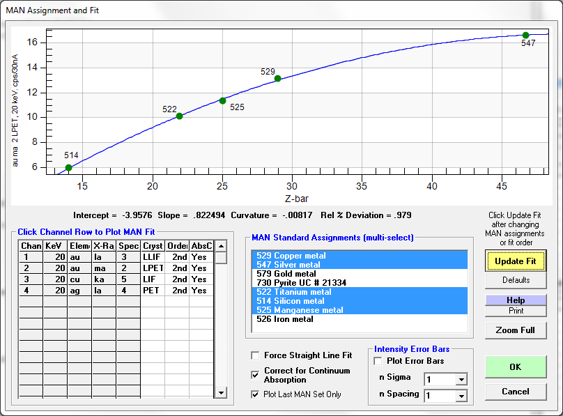 Because I also acquired a few other pure metals for an MAN bgd calibration I noticed this on the MAN calibration for the Au Ma on PET: