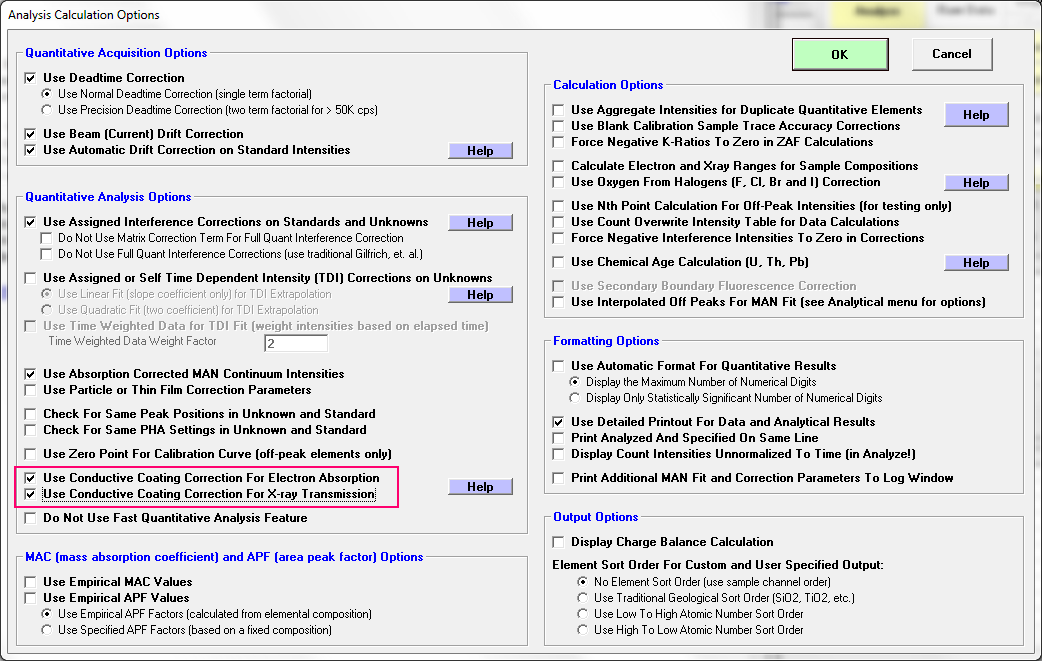 Then one has to go into the Analytical | Analysis Options dialog and explicitly turn on the conductive coating correction by checking these two checkboxes: